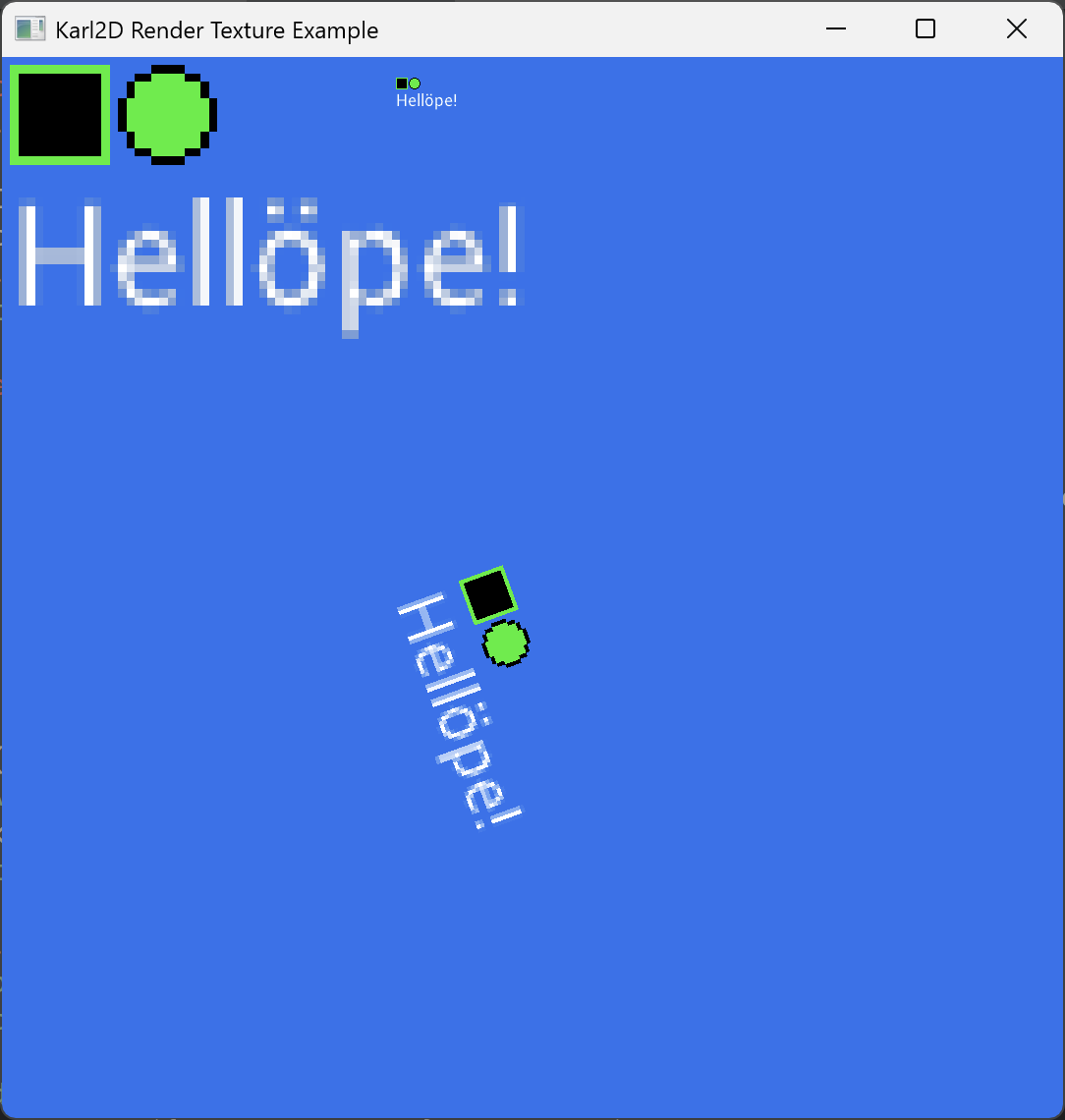 I added support for drawing into textures, as opposed to drawing to the screen. You can see how that feature works in the render_texture example.